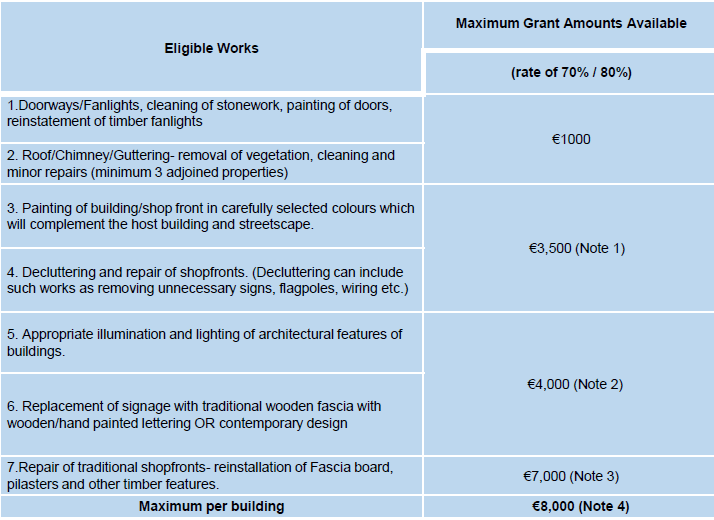 4. The maximum amount of Grant Aid that can be made available for a combination of activities (1 to 7 above) for one property is €8,000.