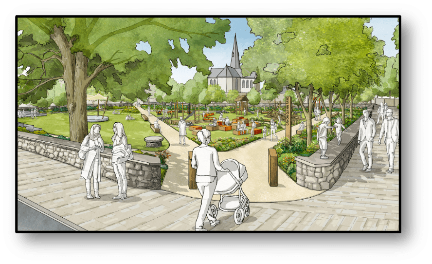Artists impression of Canon Quinn ParkAspirational new town park and Gort River Walk Extension